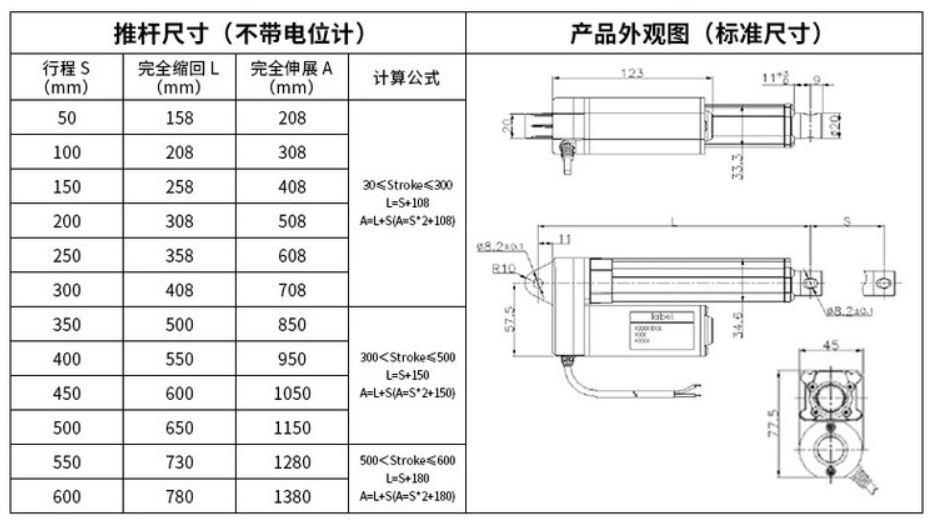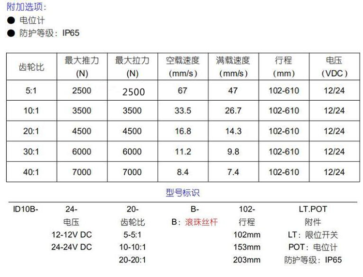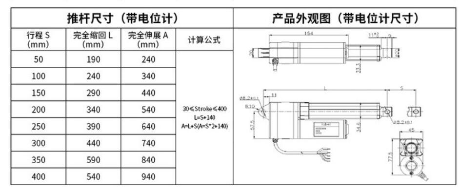 內置限位開關(可達300W次),可實現行程可隨意停止,并具備自鎖能力
